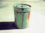 ポリタンク等に移して土壌消毒した残液は水分を含み、製品缶に戻して保管すると残液面上の缶の内側にさびが生じ缶を輪切り状態に腐食します。製品缶に水を混入し、そのまま保管しておくと上と同様のさび、腐食が発生します。